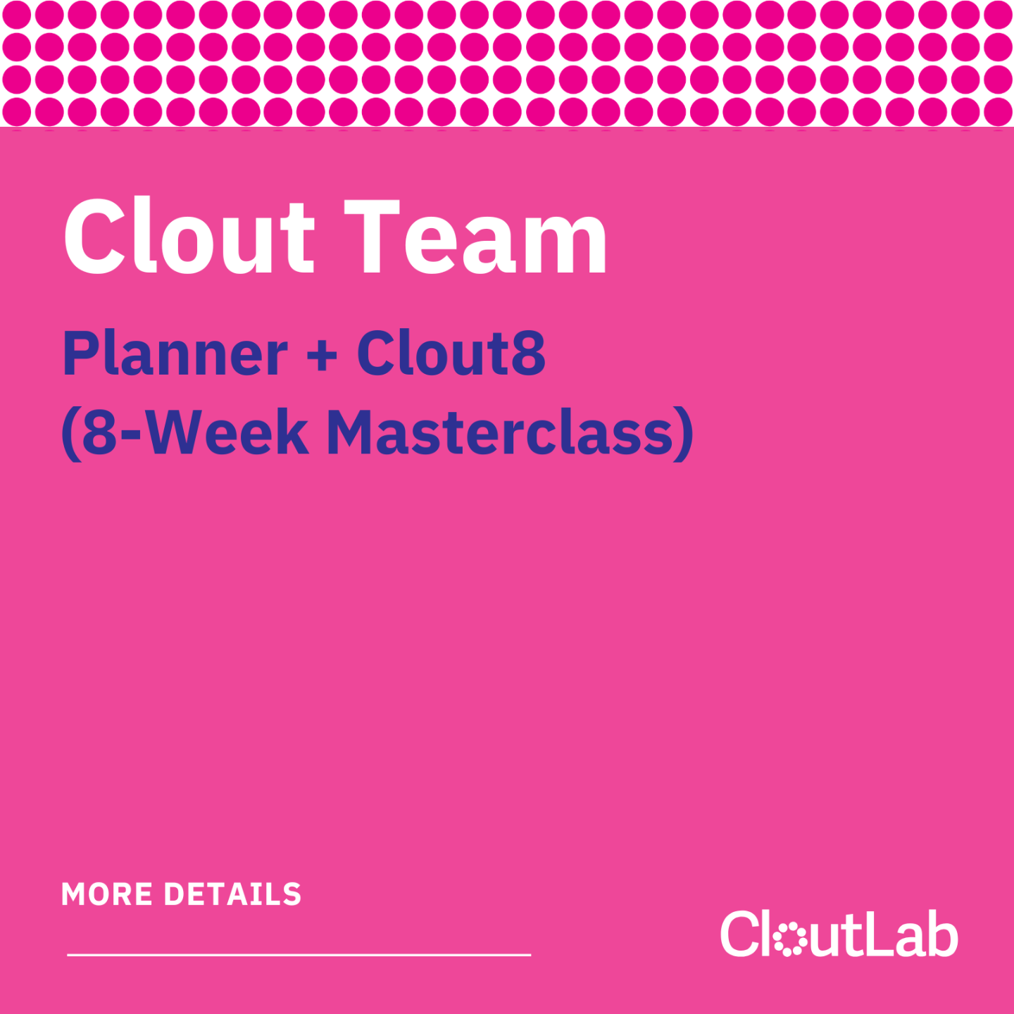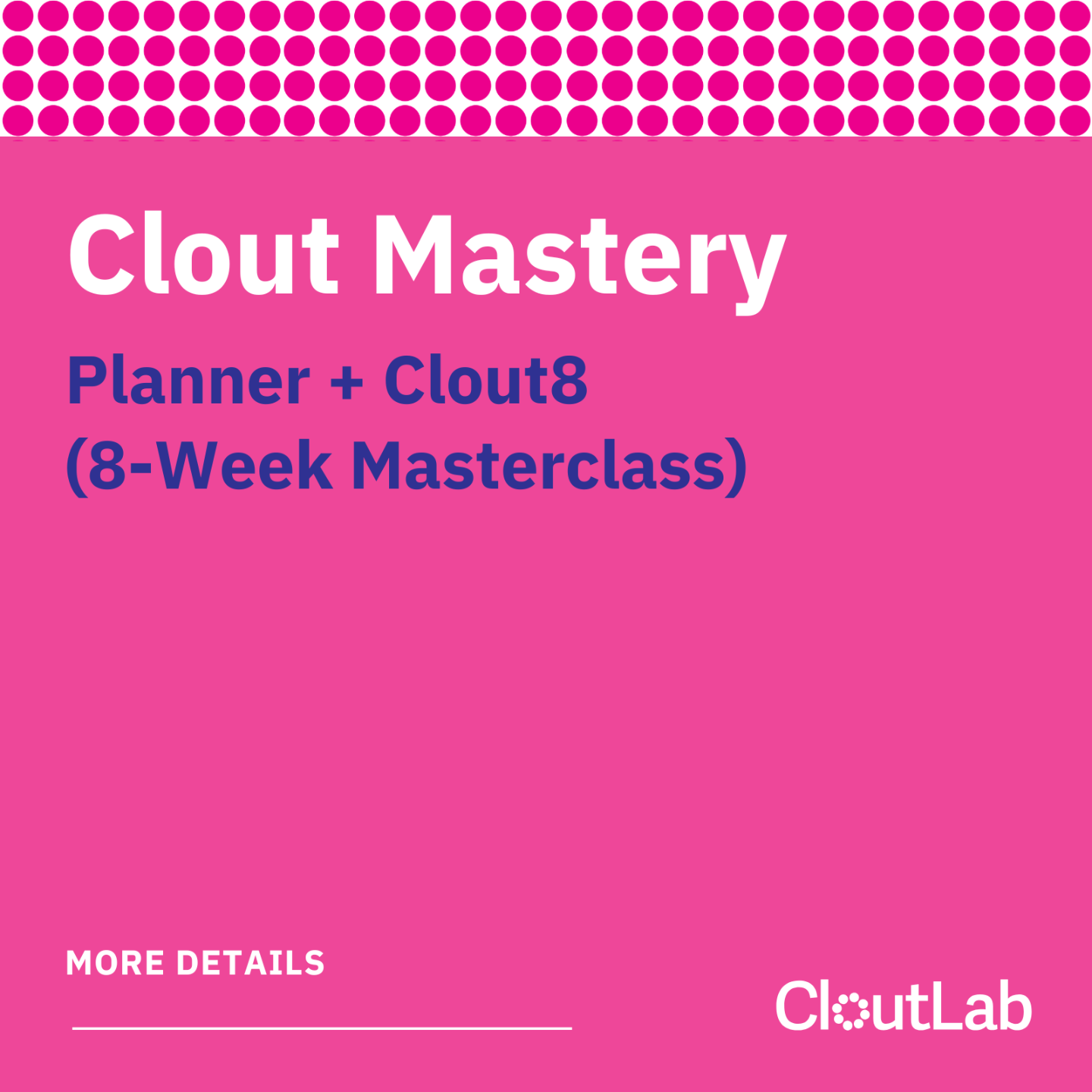 Includes: Planner, an 8-week masterclass (Clout8) with monthly coaching, and access to an accountability community.